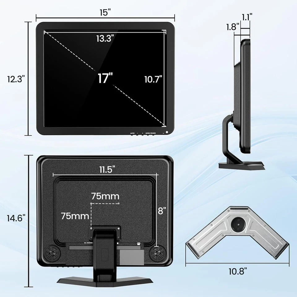 The Eyoyo 17-inch CCTV monitor offers crisp 1280×1024 resolution and integrated dual speakers to display and hear live or recorded surveillance footage. Designed for security systems at home or in the office, this monitor supports multiple input sources and provides a clear, dependable view of your cameras.