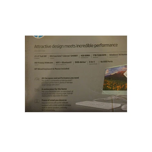 HP 22-c0073w All‑in‑One PC is a sleek and space-saving desktop computer designed for everyday home or office use. It combines the monitor and computer components into a single device, reducing cable clutter while delivering reliable performance for basic computing tasks.